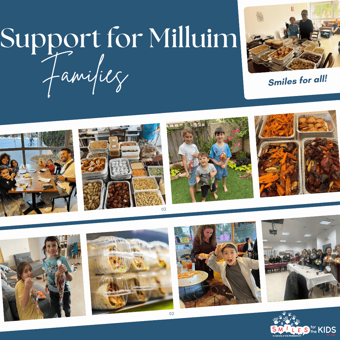 When a father is called into army service in Israel, the mother is often left to shoulder everything alone: parenting, work, home responsibilities, and the emotional weight of wartime. Support for Milluim Families was born out of the desire to lift some of that burden. This heartwarming initiative delivers nourishing meals to families where the father is away serving, along with candy and toys for the kids, bounce houses to occupy the children, and other support services—offering more than just food, but relief, community, and a reminder that these mothers are not forgotten. From full Shabbat dinners to comforting midweek meals, each delivery brings warmth and dignity to the table. Moms receive a much-needed break from daily pressures, children enjoy a sense of normalcy and love, and communities are strengthened as our support fosters connection and care. Many of the meals are lovingly prepared by mom-run businesses, empowering women economically while uplifting other women emotionally. Whether it's meals, treats for the kids, entertainment to keep them occupied, or other family support, we aim to make life easier for the family so that their soldier doesn't need to worry. Whether you choose to sponsor meals, help fund family activities, or donate in honor of an IDF soldier's family, your contribution brings light and kindness into the lives of those who sacrifice so much.